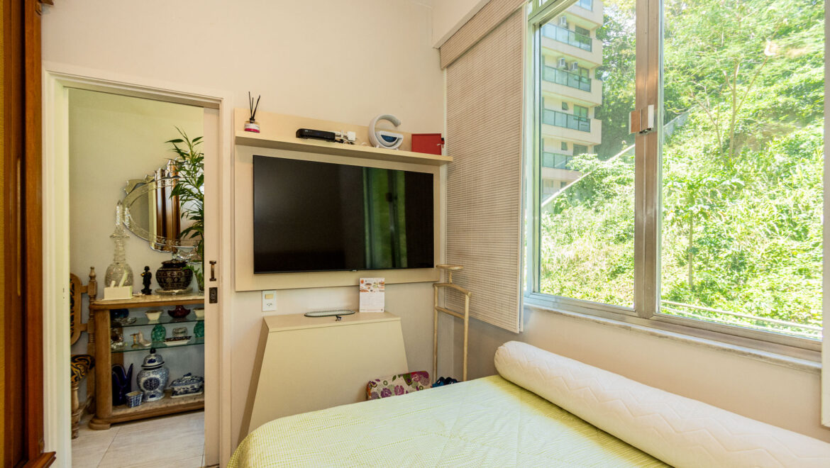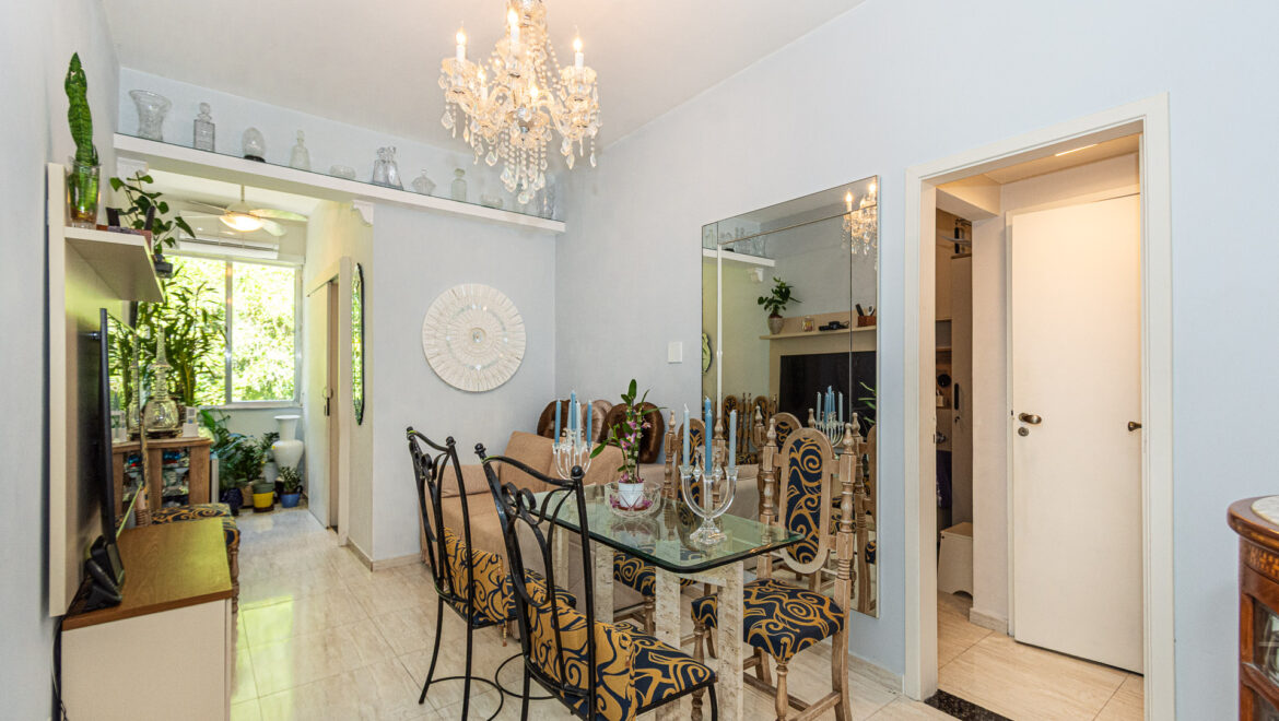 Localizado em um dos endereços mais tradicionais do Rio de Janeiro, este imóvel de fundos é sinônimo de tranquilidade em meio ao agito urbano.