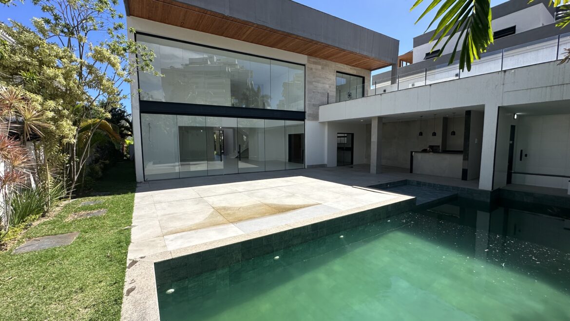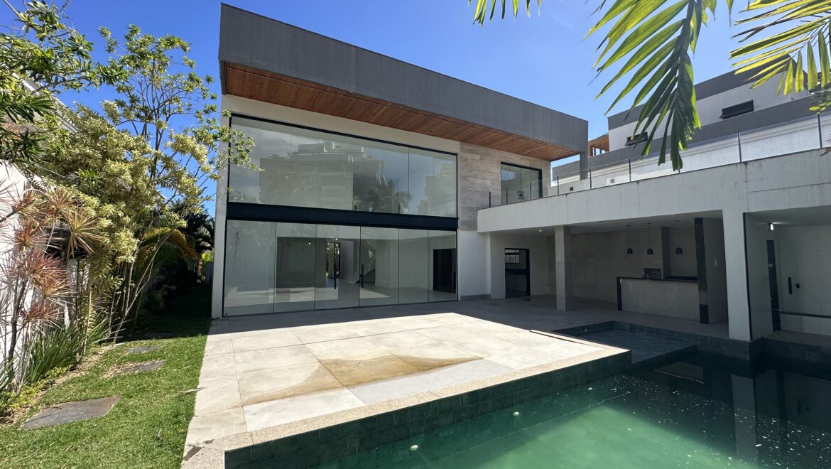 Viva o sonho do luxo e exclusividade nesta mansão espetacular, recém-acabada e pronta para morar, localizada no prestigiado condomínio Quintas do Rio, na Barra da Tijuca.