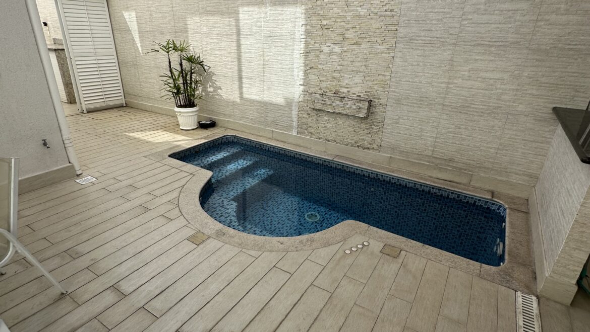 - ✅ Piscina no térreo com aquecimento solar, hidromassagem, cascata e turbojet