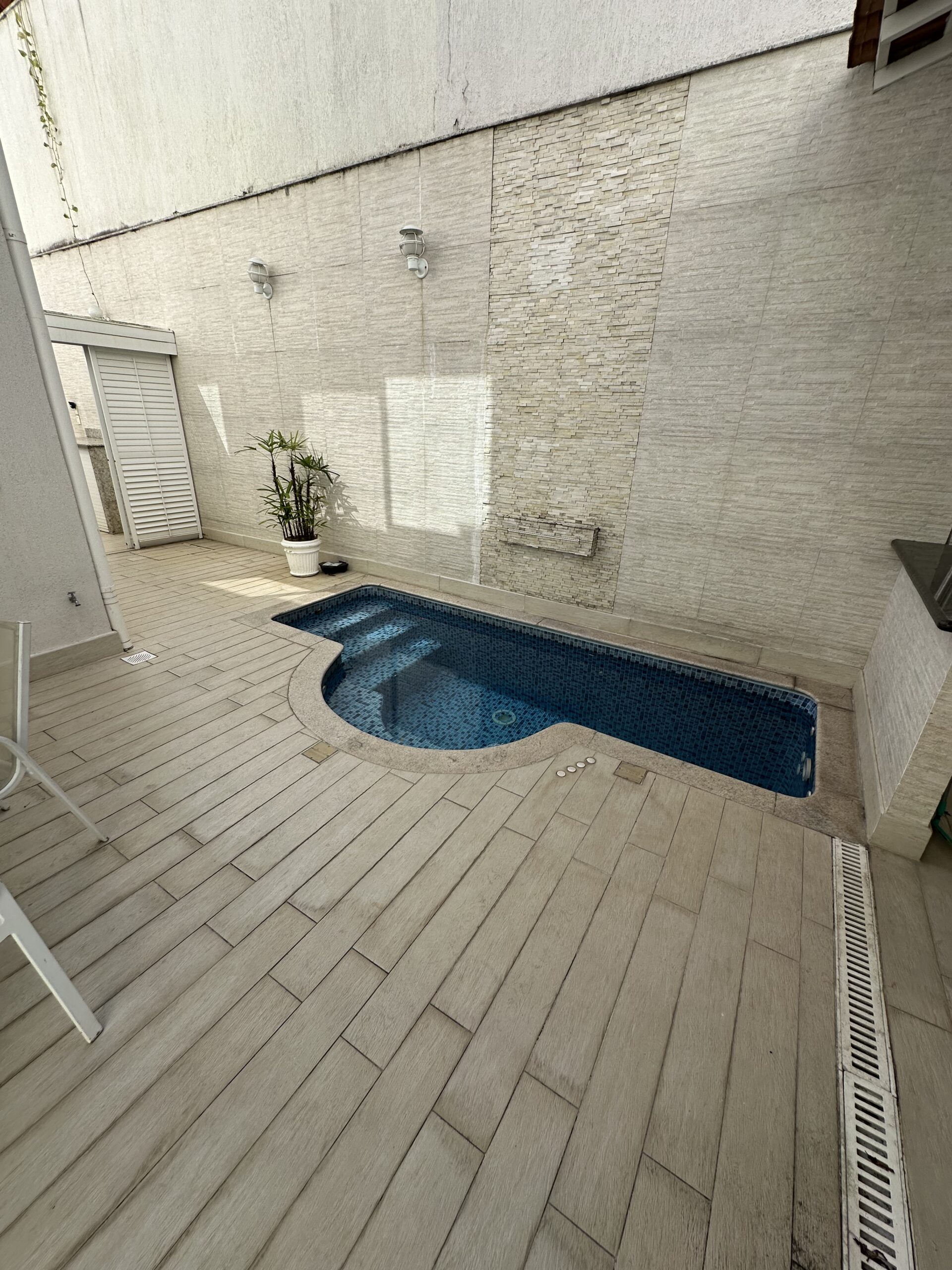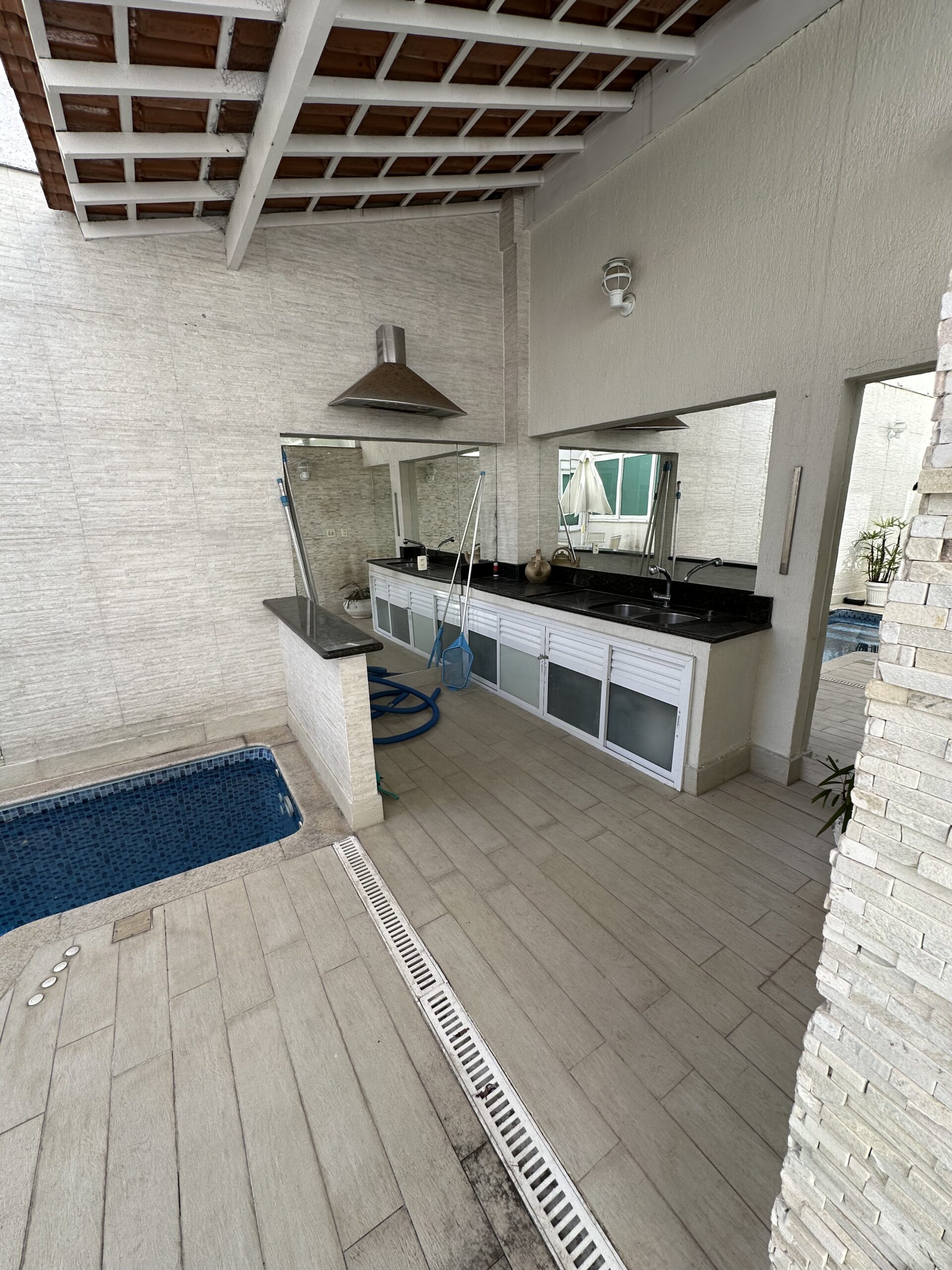 - ✅ Piscina no térreo com aquecimento solar, hidromassagem, cascata e turbojet