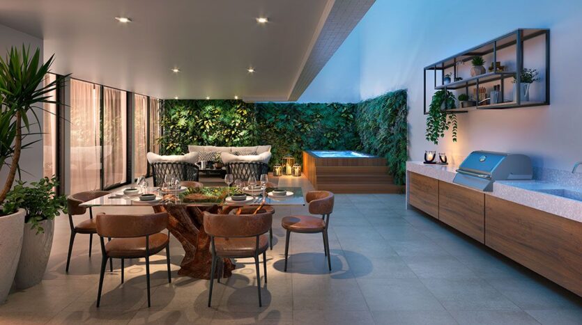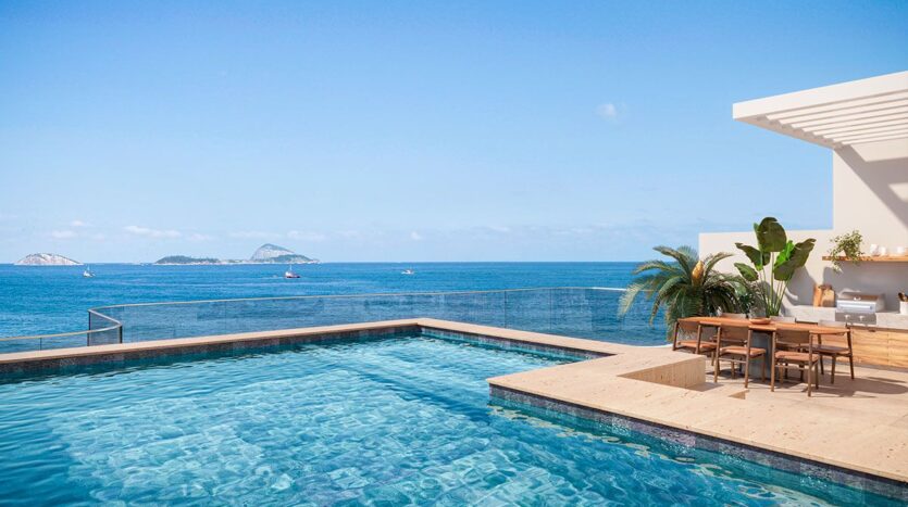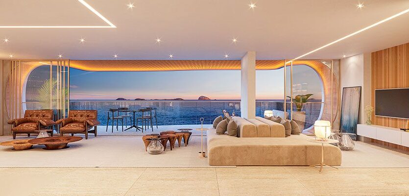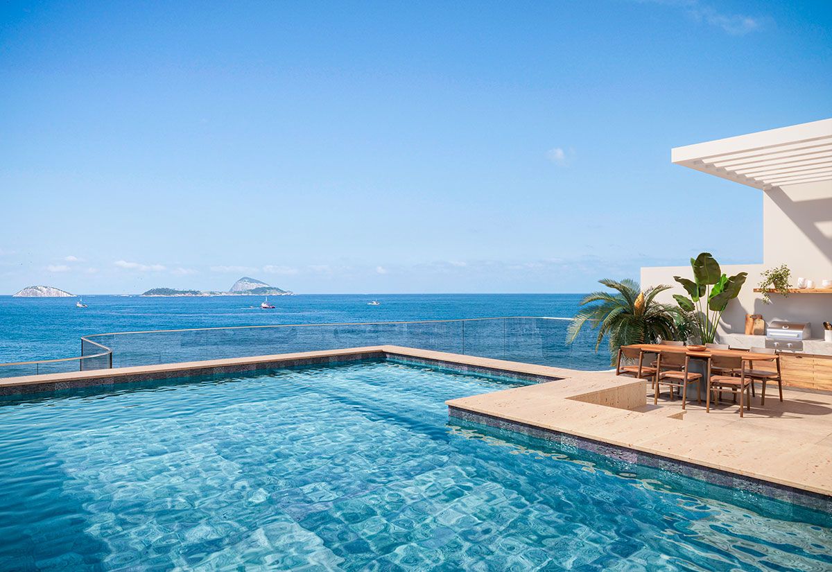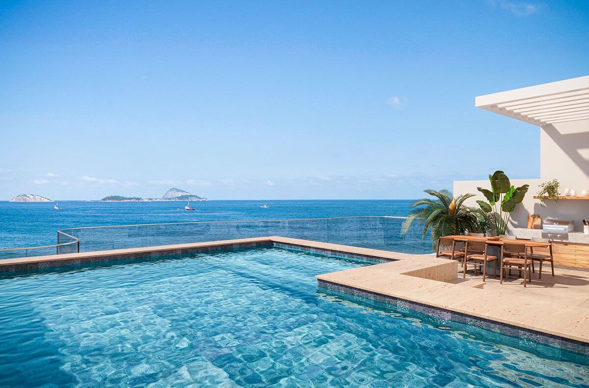 O Tom Delfim Moreira é um condomínio de altíssimo padrão na Praia do Leblon. São apenas 6 unidades residenciais entre apartamentos tipo, garden e uma cobertura duplex, com metragens de 284 m² a 501 m². As plantas oferecem 4 suítes, 3 vagas de garagem e acabamentos de excelência. O projeto é assinado pelo escritório internacional Gensler, referência em arquitetura contemporânea e inovação residencial.